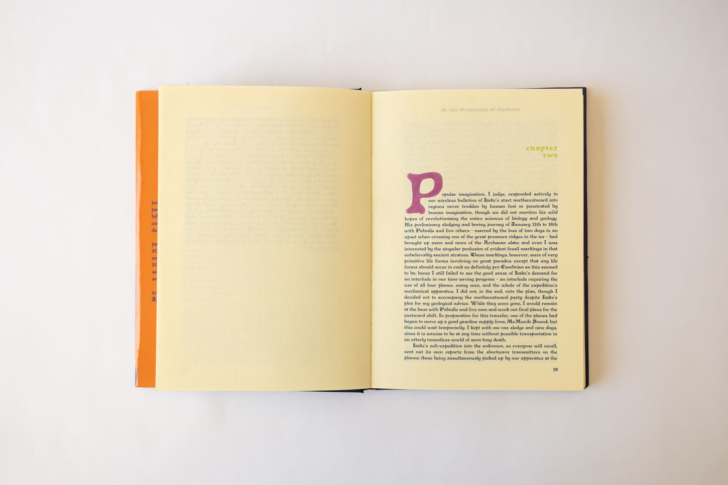"At the mountains of madness" é uma novela literária de horror escrita por H. P. Lovecraft e publicada em 1936 e hoje em domínio público. A narrativa é um apelo do protagonista, Dr. William Dyer, que tenta alertar outros pesquisadores sobre os horrores que viveu em uma expedição desastrosa ao continente antártico. Desenvolvi o projeto gráfico completo deste livro para me familiarizar com todos os processos do design editorial, desde a ilustração e diagramação até a montagem das páginas para impressão e costura do exemplar final.